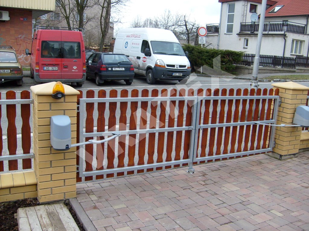 Brány křídlové Křídlové brány - vlastní zámečnická výroba , bezpečné nízkonapěťové motory Hormann , Sommer, Nice, < Prev Next >